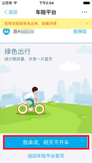 点击【我承诺,明天不开车】
